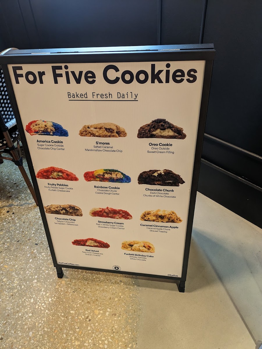 At For Five Coffee, you can expect to indulge in thoughtfully prepared offerings that elevate the everyday coffee experience. Start your morning on a sweet note with their For Five Stuffed Cookies, each decadently filled for just $5.50. Pair this with a refreshing beverage such as Spindrift sparkling water for a mere $2.00, or indulge in a refreshing Smart Water at $4.50 that promises to leave you feeling crisp and rejuvenated.