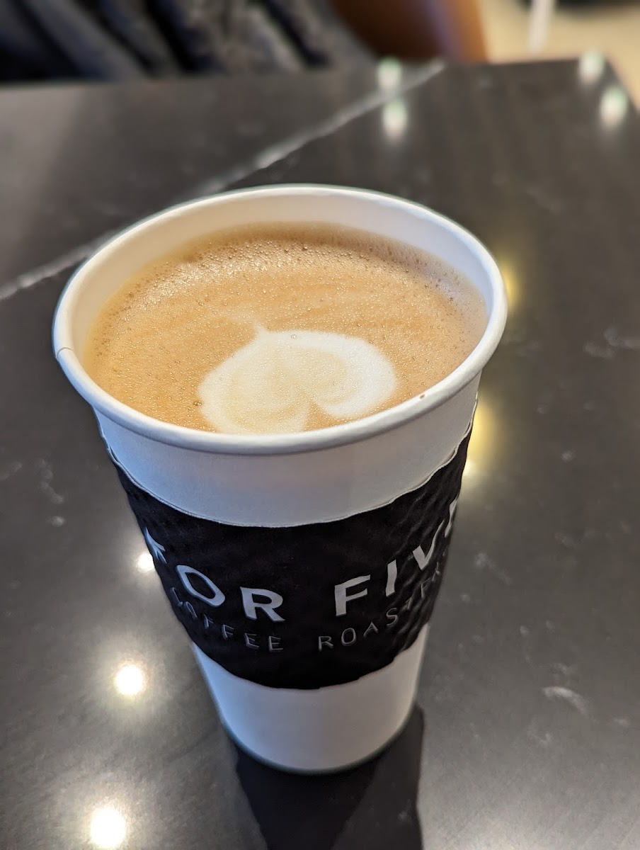 Customers consistently praise For Five Coffee not only for its artisanal menu options but also for its friendly and attentive staff. As Hilda Kroll shares, "A nice place to start the day," suggesting that the inviting atmosphere and flavorsome offerings make it ideal for breakfast meets. While some have encountered fleeting issues with connectivity, as noted by Blair Egan, the coffee and service more than compensate, with many remarking on the skills and friendliness of the baristas. David Seligson emphasizes the "sharp" quality of the coffee and the delightful baked goods, especially the lemon olive oil cake that many have come to love.